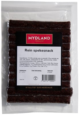 Rein Spekesnack 220g Mydland fra Mydland Vekten er 220 g. Produktet leveres av H MYDLAND AS. Produktet ble første gang registrert 11.6.2023 og sist oppdatert 6.9.2023.