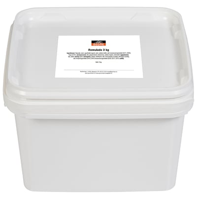 Remulade 3kg fra Litt Bedre Vekten er 3 kg. Produktet inneholder følgende allergener: Egg, Sennep, Sulfitt. Produktet leveres av GORINES AS. Produktet ble første gang registrert 11.6.2023 og sist oppdatert 6.9.2023.