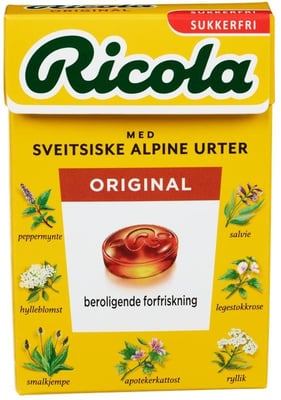 Ricola Original Sukkerfri, 50 g fra Ricola er et produkt innen Snacks & godteri, Pastiller. Produktet er tilgjengelig hos Oda til en pris av 31.40 kr. Vekten er 50 g. Produktet leveres av Conaxess Trade Norway AS. Produktet ble første gang registrert 9.1.2022 og sist oppdatert 7.10.2023. Prisen har holdt seg stabil på 31.40 kr.