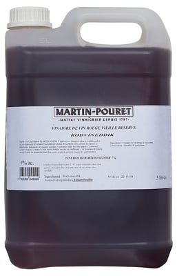 Rødvinseddik 5l Martin Pouret fra Martin Pouret Vekten er 5000 ml. Produktet inneholder følgende allergener: Sulfitt. Produktet leveres av OLUF LORENTZEN AS. Produktet ble første gang registrert 11.6.2023 og sist oppdatert 6.9.2023.