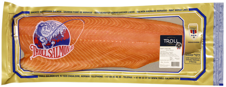 Røkt Laks Hel Side Troll fra Troll Vekten er 1100 kg. Produktet inneholder følgende allergener: Fisk. Produktet leveres av SPESIALGROSSISTEN AS. Produktet ble første gang registrert 11.6.2023 og sist oppdatert 6.9.2023.