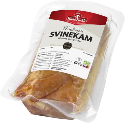 Røkt Svinekam U/b Vekten er 1.2 kg. Produktet leveres av NORDFJORD KJØTT. Produktet ble første gang registrert 11.6.2023 og sist oppdatert 6.9.2023.