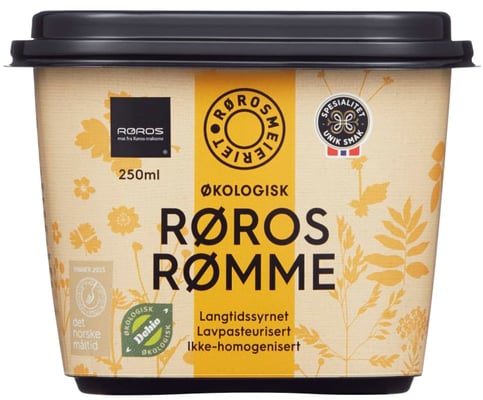 En langtids-syrnet økologisk rømme laget på oppskrift fra setrene i Røros-traktene - naturlig fet og rik på smak. Rømmen er kokestabil og egner seg godt til all slags mat og matlaging. Prisbelønnet og mange kokkers favoritt. Lavpasteurisert og ikke-homogenisert.