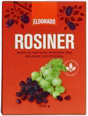 Rosiner 250g Eldorado fra Eldorado er et produkt innen Bakevarer og kjeks, Tørket frukt og nøtter, Rosiner. Produktet er tilgjengelig hos Joker til en pris av 22.90 kr. Vekten er 250 g. Produktet leveres av Unil. Produktet ble første gang registrert 9.1.2022 og sist oppdatert 6.10.2023. Prisen har holdt seg stabil på 22.90 kr.