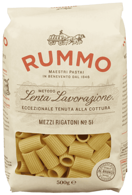 Rummo Mezzi Rigatoni 500g fra RUMMO Produktet er tilgjengelig hos Coop til en pris av 54.90 kr. Produktet inneholder følgende allergener: Gluten. Produktet leveres av GEIA FOOD AS. Produktet ble første gang registrert 9.1.2022 og sist oppdatert 16.7.2023. Prisen har holdt seg stabil på 54.90 kr.