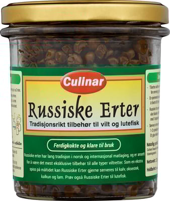 Russiske Erter Kokt 220g Culinar fra Culinar er et produkt innen Middagstilbehør, Hermetisk grønt, Hermetiske erter. Produktet er tilgjengelig hos Meny til en pris av 176.00 kr. Vekten er 220 g. Produktet leveres av Norske spesialiteter. Produktet ble første gang registrert 11.1.2022 og sist oppdatert 7.10.2023. Prisen har holdt seg stabil på 176.00 kr.