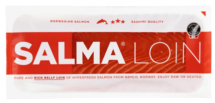 Salma Laks 1/2 Back/Belly Loin fra Salma er et produkt innen Fisk & skalldyr, Fisk, Laks. Produktet er tilgjengelig hos Meny til en pris av 176.04 kr. Vekten er 360 g. Produktet inneholder følgende allergener: Fisk. Produktet leveres av Salmon brands as. Produktet ble første gang registrert 9.1.2022 og sist oppdatert 6.10.2023. Prisen har endret seg fra 143.64 kr til 176.04 kr over tid.