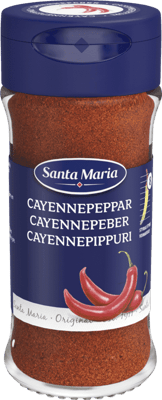 Santa Maria Cayennepepper 30g fra SANTA MARIA er et produkt innen Middagstilbehør, Krydder, Kayennepepper. Produktet er tilgjengelig hos Coop til en pris av 33.90 kr. Produktet leveres av SANTA MARIA NORGE AS. Produktet ble første gang registrert 9.1.2022 og sist oppdatert 16.7.2023. Prisen har holdt seg stabil på 33.90 kr.