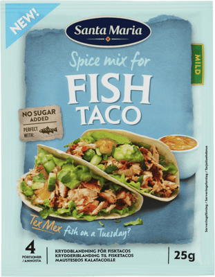 Santa Maria Fish Taco Spice Mix 25g fra SANTA MARIA Produktet er tilgjengelig hos Coop til en pris av 24.90 kr. Produktet leveres av SANTA MARIA NORGE AS. Produktet ble første gang registrert 9.1.2022 og sist oppdatert 16.7.2023. Prisen har holdt seg stabil på 24.90 kr.