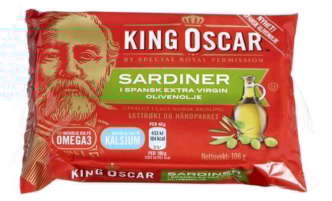 Sardiner i Olje fra King Oscar Vekten er 106 kg. Produktet inneholder følgende allergener: Fisk. Produktet leveres av KING OSCAR AS. Produktet ble første gang registrert 11.6.2023 og sist oppdatert 6.9.2023.