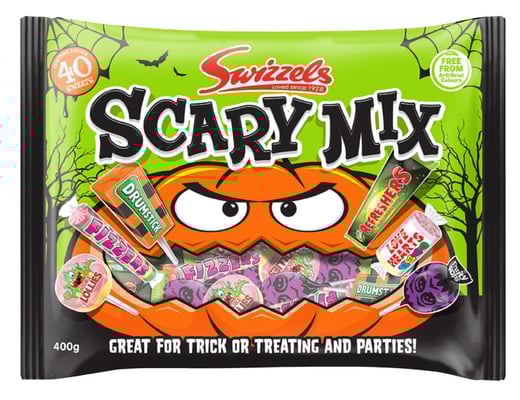 Scary Mix 400g Swizzels fra Swizzels Produktet er tilgjengelig hos Meny til en pris av 49.50 kr. Produktet inneholder følgende allergener: Soya. Produktet leveres av Conaxess trade norway. Produktet ble første gang registrert 24.10.2022 og sist oppdatert 16.7.2023. Prisen har endret seg fra 99.00 kr til 49.50 kr over tid.