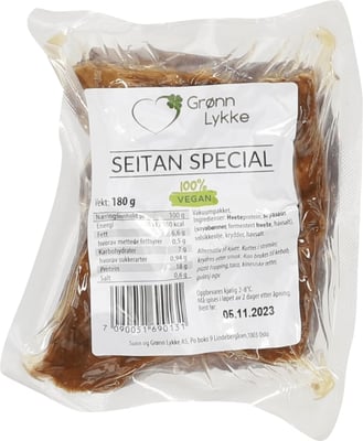 Seitan Special 180g Grønn Lykke fra Grønn lykke er et produkt innen Middag, Vegetarretter. Produktet er tilgjengelig hos Meny til en pris av 46.90 kr. Vekten er 180 g. Produktet inneholder følgende allergener: Gluten, Soya. Produktet leveres av Sunn og grønn lykke as. Produktet ble første gang registrert 9.1.2022 og sist oppdatert 6.9.2023. Prisen har holdt seg stabil på 46.90 kr.