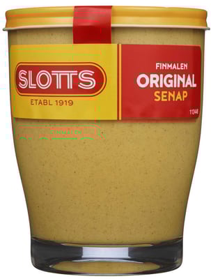 Slotts Original Sennep er vår klassiske sennep laget med naturlige ingredienser. Det klassiske valget til hamburgere, skinke og stek. Kan også brukes som aroma i sauser, gryteretter og dressinger. Slott sennep er laget av gule og brune sennepsfrø, sammen med vår unik blanding av krydder gir sennepen sin karakteristiske smak.