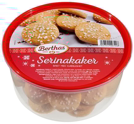Serinakaker 300g Berthas fra Berthas Vekten er 300 g. Produktet inneholder følgende allergener: Egg, Gluten. Produktet leveres av BAXT AS. Produktet ble første gang registrert 11.6.2023 og sist oppdatert 6.9.2023.
