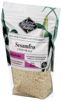 Sesamfrø Økologisk, 300 g fra Kolonihagen Produktet er tilgjengelig hos Oda til en pris av 29.60 kr. Vekten er 300 g. Produktet leveres av Rema 1000. Produktet ble første gang registrert 9.1.2022 og sist oppdatert 7.10.2023. Prisen har holdt seg stabil på 29.60 kr.