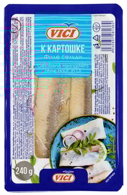 Sildefilet Salt Vici 240g er et produkt innen Fisk & skalldyr, Fisk, Sild. Vekten er 240 g. Produktet inneholder følgende allergener: Fisk. Produktet leveres av BAZA AS. Produktet ble første gang registrert 11.6.2023 og sist oppdatert 6.9.2023.