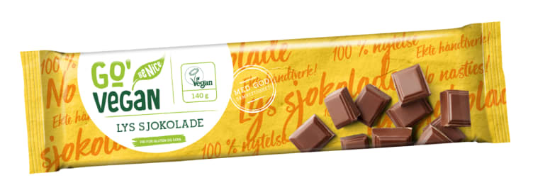Go’Vegan er Norges mest kjente og prefererte plantebaserte merkevare og har laget smakfulle veganske alternativer siden 2017. Vår lyse sjokolade smelter i munnen og kan brukes på akkurat samme måte som vanlig melkesjokolade, uten at noen dyr har vært involvert. Det skal smake godt å velge vegansk!