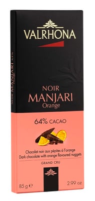 Sjokolade Mørk 64% Manjari Orange 85g Valrhona