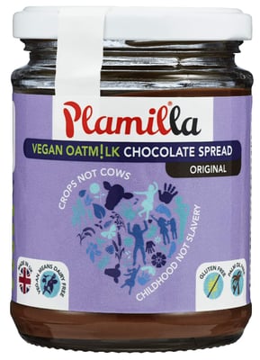 Plamilla Vegansk sjokoladepålegg er et deilig allergivennlig pålegg helt uten melk, gluten, egg eller nøtter. Smaker som sjokoladepålegg med hasselnøtt, helt uten nøtter! Fast inventar på frokostbordet til ferskt brød og pannekaker. Passer for både barn og voksne.