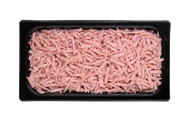 Svinekjøtt (51%), vann, storfecollagen, stabilisator E451, E450 (natrium og kalium di- og trifosfater), E508 (kaliumklorid), dekstrose, antioksidant E301 (natriumaskorbat), surhetsregulerende middel E326 (kaliumlaktat), salt, konserveringsmiddel E250 (natriumnitritt), fortykningsmiddel E407 (karragenan), E415 (xantangummi), krydder (pepper, koriander, muskatnøtt, ingefær, raps, chili).Prosesseringsanalyse