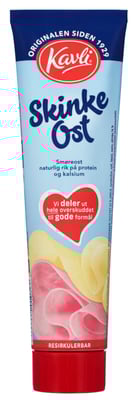 Kavli SkinkeOst er ett av Norges mest populære ostepålegg. Den er laget av ekte, norsk hvitost og skinkebiter som gjør den naturlig rik på kalsium og protein. Osten holder seg godt i og utenfor kjøleskap, og tuben gjør det enkelt å smøre skiven. Del med glede - Kavli deler ut hele overskuddet til gode formål! NB: Den tomme tuben resirkuleres som glass- og metall, trenger ikke å vaskes.