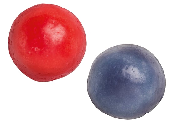 Sukker/socker, glykosesirup/-sirap, konsistensmiddel/-medel (oksidert/oxiderad potetstivelse/potatisstärkelse), invertsukker/socker, gelatin, surhetsregulerendemidler/-medel (E330, E331), stabilisator/stabiliseringsmedel (E420), aroma, fargestoffer/färgämnen (E163, E133, E120, E160e), emulgator/emulgeringsmedel (E471), overflatebehandlingsmidler/ytbehandlingsmedel (kokosolje, E422, E901).