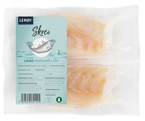 Skrei Loins 2x140g Lerøy fra Lerøy Vekten er 0.28 kg. Produktet inneholder følgende allergener: Fisk. Produktet leveres av SJØMATHUSET AS 2. Produktet ble første gang registrert 11.6.2023 og sist oppdatert 6.9.2023.