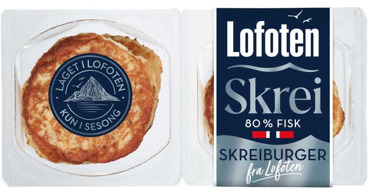 Lofoten Skreiburger er laget med mest skrei og litt hyse og hvitlaks. Denne kombinasjonen gir fiskeburgeren en ekstra saftig og god konsistens. Lofoten Skreiburger er kun tilgjengelig i sesong og er laget med naturlige råvarer. Skreiburgeren er laget i Lo