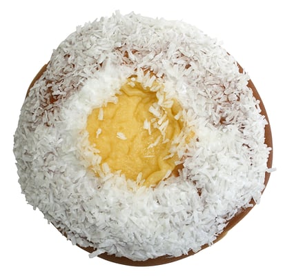 HVETEMEL, vann, sukker, gjær, rapsolje, salt, kardemomme, emulgator E472,E471, guarkjernemel, enzymer, melbehandlingsmiddel (askorbinsyre, aroma), Vaniljekrem: vann, sukker, modifisert stivelse (E1414), melkepulver, fett(rapsolje, fullherdet raps, kokos), fortykningsmiddel(E401, E404), salt, emulgator(E471), farge(E160A, E101, E160e), aroma(vanilje), Melisglasur: melis vann, emulgator(E471,e475), naturlig appelsinaroma, stabiliseringsmiddel(E420 etylalkohol). Dekor: kokos
