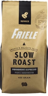 Slow Roast Mørk Hele bønner, 450 g fra Friele er et produkt innen Drikke, Kaffe, Hele kaffebønner. Produktet er tilgjengelig hos Oda til en pris av 107.50 kr. Vekten er 450 g. Produktet leveres av Jacobs Douwe Egberts Norge AS Retail. Produktet ble første gang registrert 9.1.2022 og sist oppdatert 7.10.2023. Prisen har endret seg fra 115.10 kr til 107.50 kr over tid.