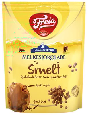 Freia Smelt er Freia Melkesjokolade formet som små dråper. Lett å smelte, lett å like. Sjokoladedråpene er gode både som fyll og som topping, i kaker, cookies, sjokoladefondanter, boller, muffins eller annet bakverk. Les om COCOA LIFE på www.freia.no/baer