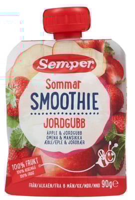 Smoothie Sommer 90g Semper fra Semper er et produkt innen Barneprodukter, Barnedessert. Produktet er tilgjengelig hos SPAR til en pris av 17.90 kr. Vekten er 90 g. Produktet leveres av Bonaventura sales. Produktet ble første gang registrert 9.1.2022 og sist oppdatert 6.10.2023. Prisen har endret seg fra 17.50 kr til 17.90 kr over tid.