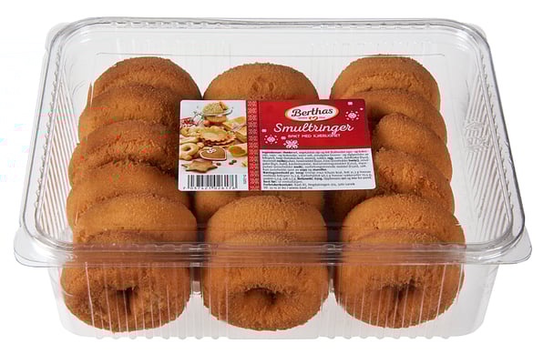 Smultringer 650g Berthas fra Berthas Produktet er tilgjengelig hos SPAR til en pris av 69.90 kr. Produktet inneholder følgende allergener: Egg, Gluten, Melk. Produktet leveres av Baxt as. Produktet ble første gang registrert 31.10.2022 og sist oppdatert 16.7.2023. Prisen har holdt seg stabil på 69.90 kr.
