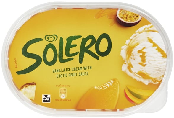 Solero Exotic er en Vaniljeis med eksotisk fruktsaus toppet med eksotisk fruktsorbet. En perfekt kombinasjon av myk vaniljeiskrem, eksotisk fruktsaus og sorbet. Iskremen kombinerer to deilige iskremverdener som utgjør et perfekt par av myk iskrem og fruktig saus. Og minst 50% av frukten som brukes i dette produktet dyrkes bærekraftig. For mer informasjon besøk: www.icecreamjoy.com.