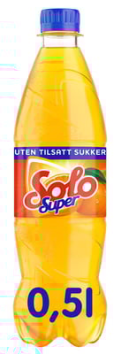 Solo Super 0,5l flaske fra Solo er et produkt innen Drikke, Brus. Produktet er tilgjengelig hos Joker til en pris av 26.90 kr. Vekten er 500 ml. Produktet leveres av Ringnes as. Produktet ble første gang registrert 9.1.2022 og sist oppdatert 6.10.2023. Prisen har holdt seg stabil på 26.90 kr.