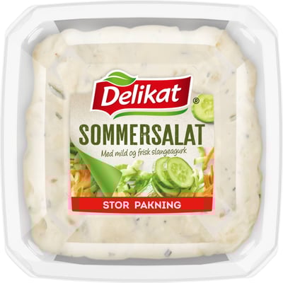 Delikat Sommersalat 350g. Med mild og frisk slangeagurk. Passer fint til grillmaten, eller bare på en brødskive med kjøttpålegg. En sesongvariant som er i salg fra ca. 1.mai til ca. 1.september.