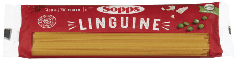 Sopps Linguine 450g fra SOPPS er et produkt innen Middag, Pasta, Spagetti. Produktet er tilgjengelig hos Coop til en pris av 35.90 kr. Produktet inneholder følgende allergener: Gluten. Produktet leveres av LANTMANNEN CEREALIA AS. Produktet ble første gang registrert 9.1.2022 og sist oppdatert 16.7.2023. Prisen har holdt seg stabil på 35.90 kr.