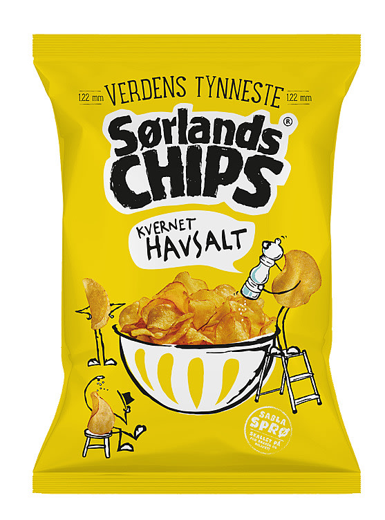 Verdens Tynneste Sørlandschips nykvernet Havsalt, en chips for hele familien. Et godt dryss havsalt på vårt tynneste potetgull. 1,22mm tynn potetchips, finkuttet med presisjon for å gi deg den tynneste Sørlandschipsen du har smakt. Stekt langsomt i solsikkeolje, i små porsjoner og på ekstra svak varme. Sørlandschips er den originale chipsprodusenten på Sørlandet, kjent for ekstra sprø og smakfull chips.