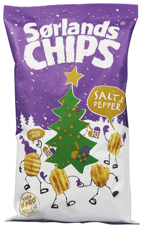 Sørlandschips Rifla Salt & Pepper, en chips for hele familien. Stekt langsomt i solsikkeolje, i små porsjoner og på ekstra svak varme. Sørlandschips er den originale chipsprodusenten på Sørlandet, kjent for ekstra sprø og smakfull chips.
