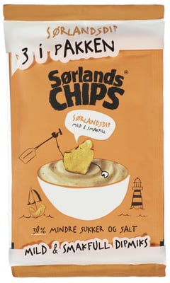 En mild og smakfull dipmix fra Sørlandschips, med 30% mindre sukker og salt. Dip med deilig smak av paprika, løk, hvitløk og persille. Blandes med 3 dl rømme eller lettrømme. Nytes best med potetchips fra Sørlandschips.