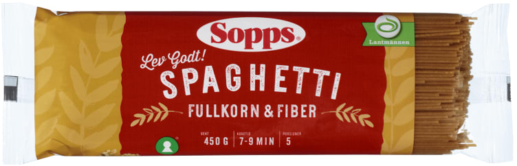 Spagetti Fullkorn 450g Sopps fra Sopps er et produkt innen Middag, Pasta, Spagetti. Produktet er tilgjengelig hos Joker til en pris av 27.90 kr. Vekten er 450 g. Produktet inneholder følgende allergener: Gluten. Produktet leveres av Lantmännen cerealia as. Produktet ble første gang registrert 9.1.2022 og sist oppdatert 6.10.2023. Prisen har holdt seg stabil på 27.90 kr.