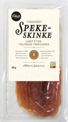 Tynne skiver med mør og smakfull spekeskinke. Skinken er speket på italiensk måte, henger til tørk/modnes i ca 6 måneder.