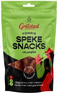 Spekesnacks Kompis Jalapeno 55g Grilstad fra Grilstad er et produkt innen Pålegg & frokost, Spekemat, Spekepølser. Produktet er tilgjengelig hos KIWI til en pris av 29.40 kr. Produktet leveres av Grilstad as. Produktet ble første gang registrert 11.12.2022 og sist oppdatert 16.7.2023. Prisen har endret seg fra 27.90 kr til 29.40 kr over tid.