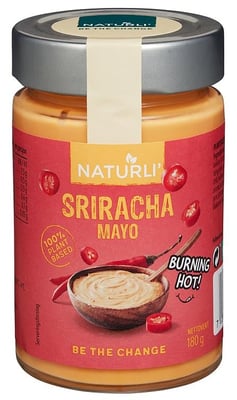 NATURLI’ Sriracha Mayo er 100% plantebasert og uten egg eller andre animalske ingredienser! Smaken er ny og spennende og dressingen passer utmerket til sandwich, grillmat og asiatiske retter.