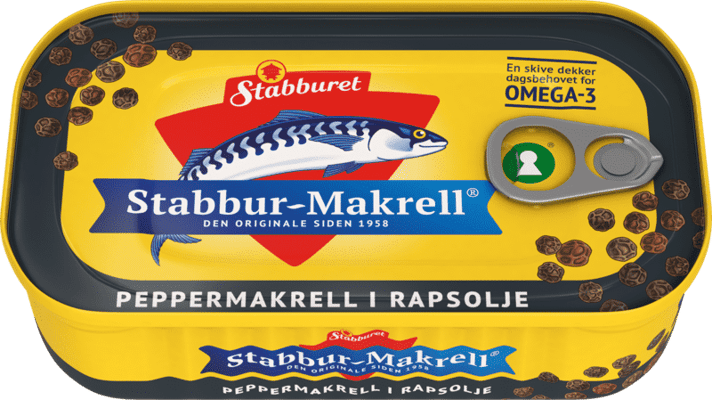 Peppermakrell i rapsolje har en tydelig smak av røkt makrell, krydret med grovkvernet pepper, varianten med mest fisk og omega-3.