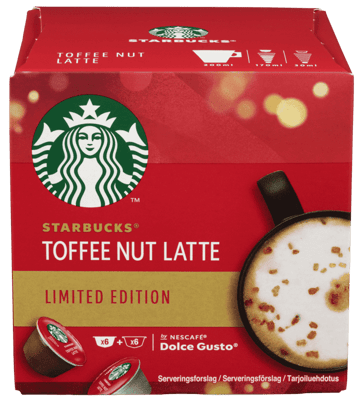 Starbuck Toffee Nut Latte x12 fra STARBUCKS Produktet er tilgjengelig hos Coop til en pris av 64.90 kr. Produktet inneholder følgende allergener: Melk. Produktet leveres av NESTLÉ NORGE AS. Produktet ble første gang registrert 15.7.2022 og sist oppdatert 16.7.2023. Prisen har endret seg fra 63.90 kr til 64.90 kr over tid.