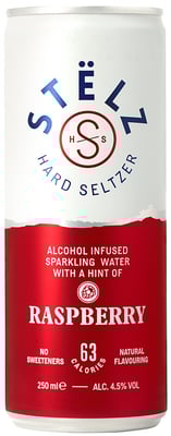 Stelz Raspberry Hard Selzer fra STELZ Vekten er 250 ml. Produktet leveres av HARD SELTZER AS. Produktet ble første gang registrert 10.6.2023 og sist oppdatert 6.9.2023.