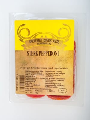 Sterk Pepperoni 45g Vikingsnacks fra Vikingsnacks er et produkt innen Pålegg & frokost, Spekemat, Spekepølser. Produktet er tilgjengelig hos Meny til en pris av 31.90 kr. Produktet leveres av Spesialgrossisten as. Produktet ble første gang registrert 11.6.2023 og sist oppdatert 3.8.2023. Prisen har holdt seg stabil på 31.90 kr.