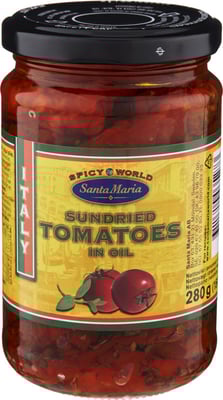 SUNDRIED TOMATOES 280g Santa Maria fra Santa Maria Vekten er 280 g. Produktet leveres av SANTA MARIA NORGE AS. Produktet ble første gang registrert 11.6.2023 og sist oppdatert 6.9.2023.
