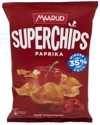 Superchips Paprika 140g Maarud fra Maarud Produktet er tilgjengelig hos Joker til en pris av 37.90 kr. Produktet leveres av Maarud as. Produktet ble første gang registrert 9.1.2022 og sist oppdatert 16.7.2023. Prisen har holdt seg stabil på 37.90 kr.